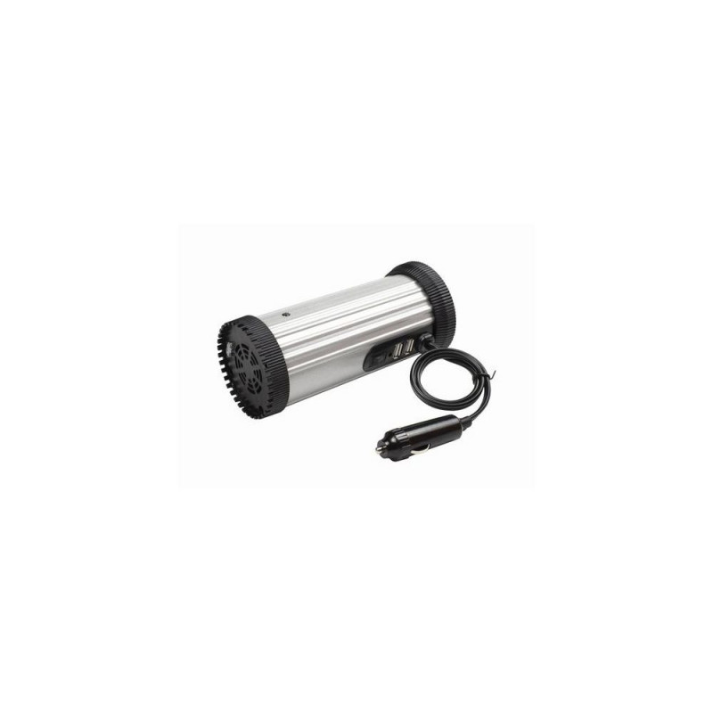 Single socket 150 W car power inverter<br>Allows to connect any AC powered electronics (max. 150W), like notebooks, chargers of mobile phones/cameras, electrical tools etc.<br>Automatic overheat-, overload- and short-circuit protection<br>Loading and thermostatically controlled cooling fan ensure a stable power supply<br>LED status indicator<br>Replaceable fuseGembird EG-PWC150-01. Purpose: Universal, Power supply type: Auto, Input voltage: 10-16 V. Product colour: Black, Grey, Housing material: Aluminium, Plastic. Certification: ISO9002, CE, RoHS. Cable length: 0.7 m, Width: 76 mm, Depth: 156 mm. Package width: 115 mm, Package depth: 200 mm, Package height: 85 mm