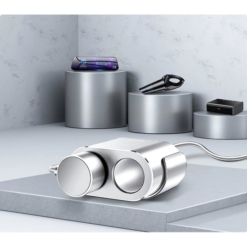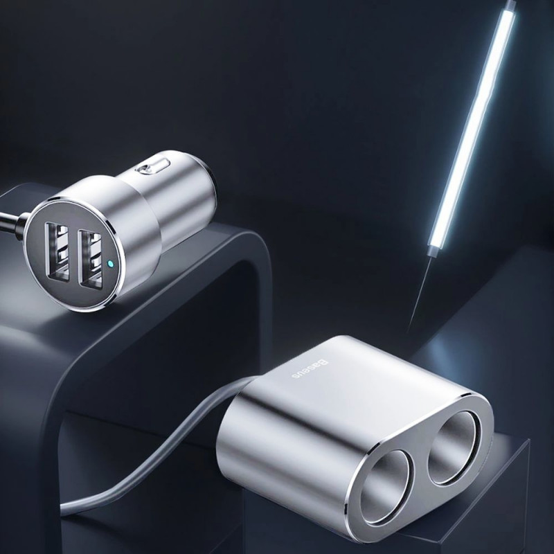 Baseus CRDYQ-0S Splitter 2x Cigarette Lighter Socket 80W 2x USB-A 3.1A - Silver