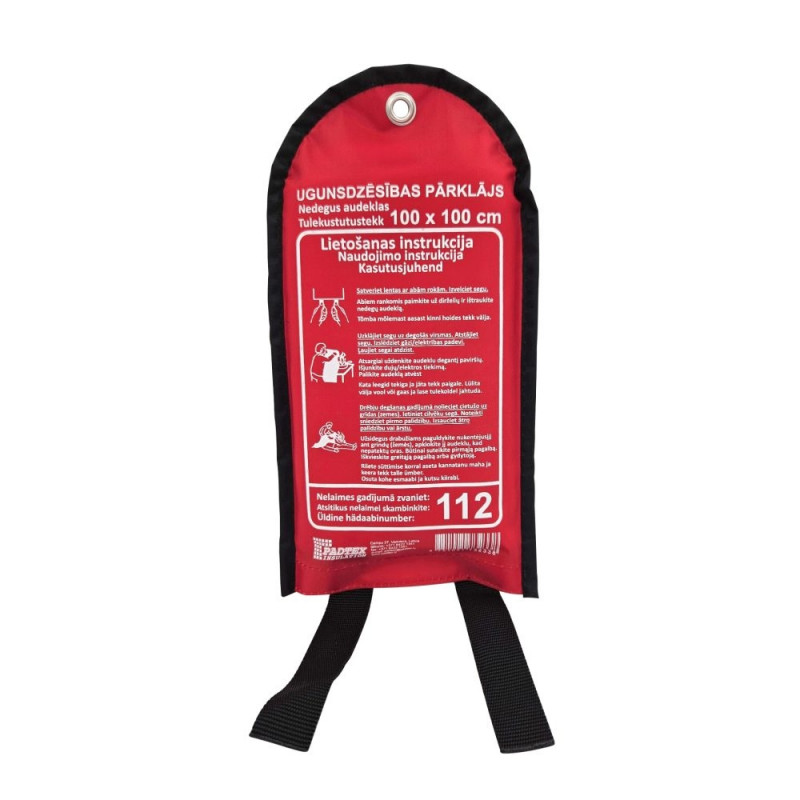 Kvaliteetne tulekustutustekk suurusega 100 x 100 cm. Toodetud Lätis.
