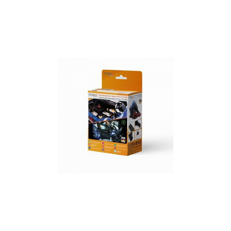 <br />Technaxx TX-168. Product type: Car alarm system, Connectivity technology: Wired & Wireless, Housing colour: Black. Power source type: Battery, Cigar lighter, Input voltage: 12 - 24 V. Package type: Box