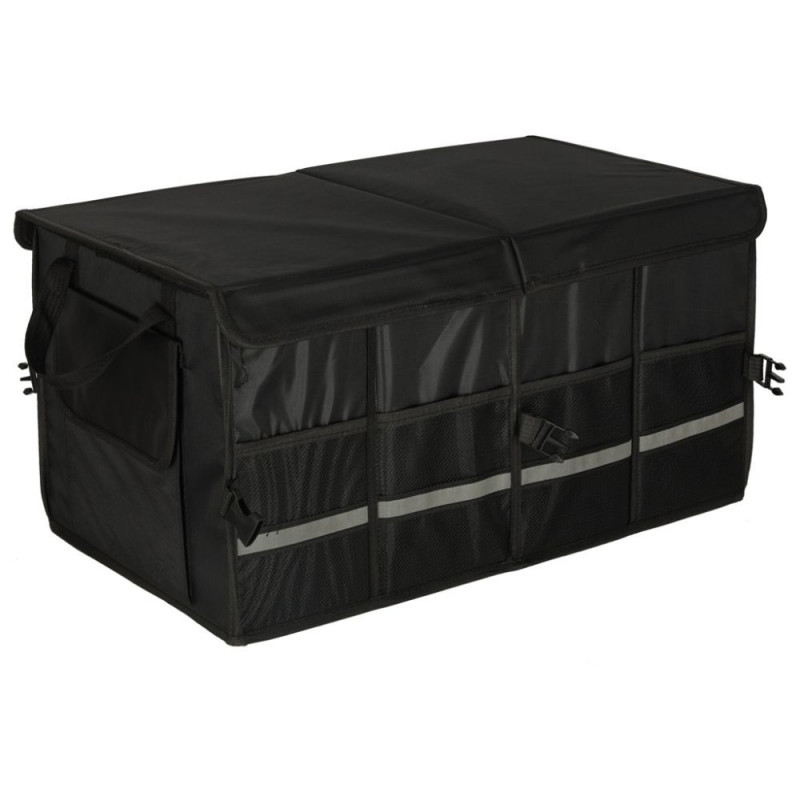 Velcro-kinnitusega kaasaskantav autokott võimaldab mugavalt transportida erineva suurusega esemeid. Seda eristab küljel olev helkurlint, mis muudab pagasi lahtipakkimise pimedal ajal oluliselt lihtsamaks.
