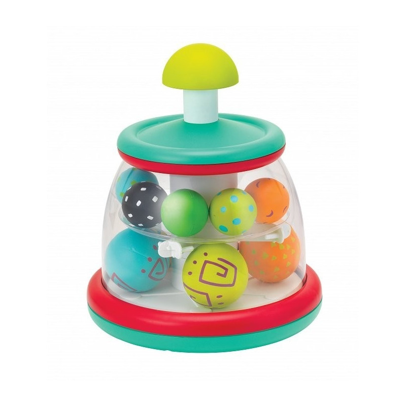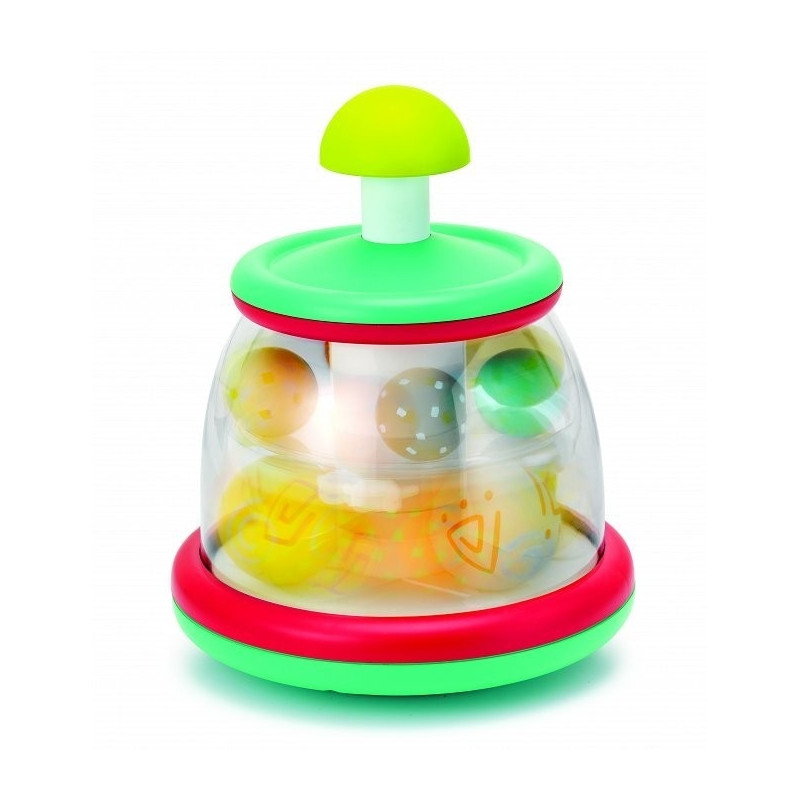 - Vajuta mänguasja ülaosas olevat nuppu, et panna värvilised pallid liikuma.