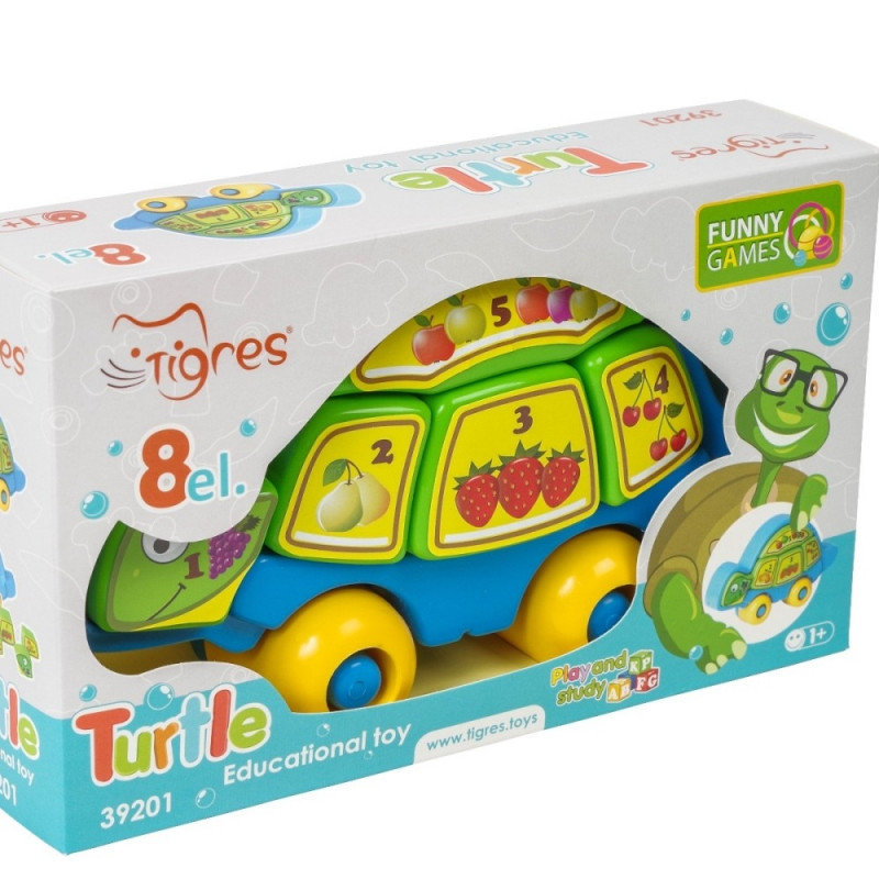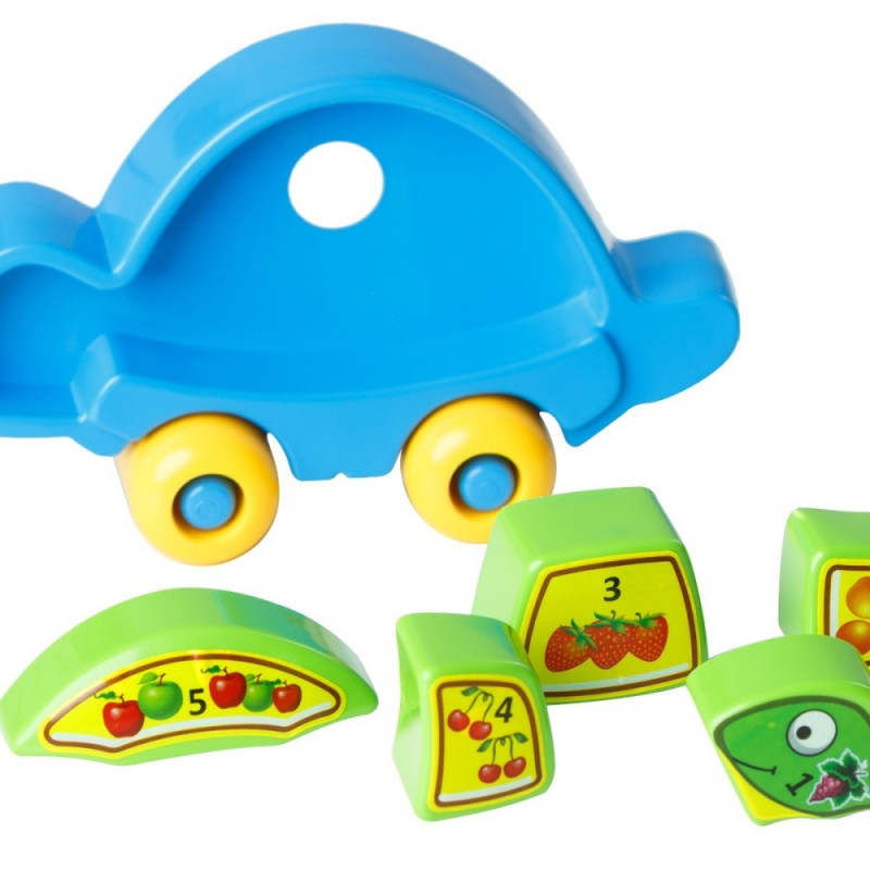 Kilpkonnakujulise ratastel raami sees on 5 pusle tükki. Asetades iga osa oma õigele kohale moodustub armas kilpkonn. Igal tükil on oma number ning sama arv puuvilju.