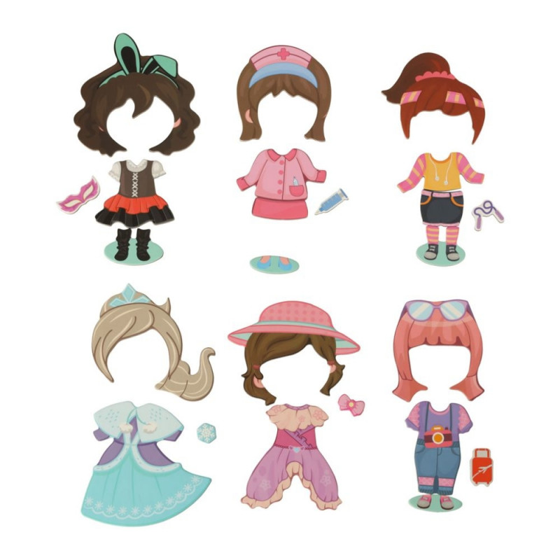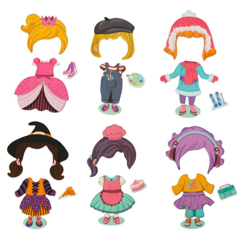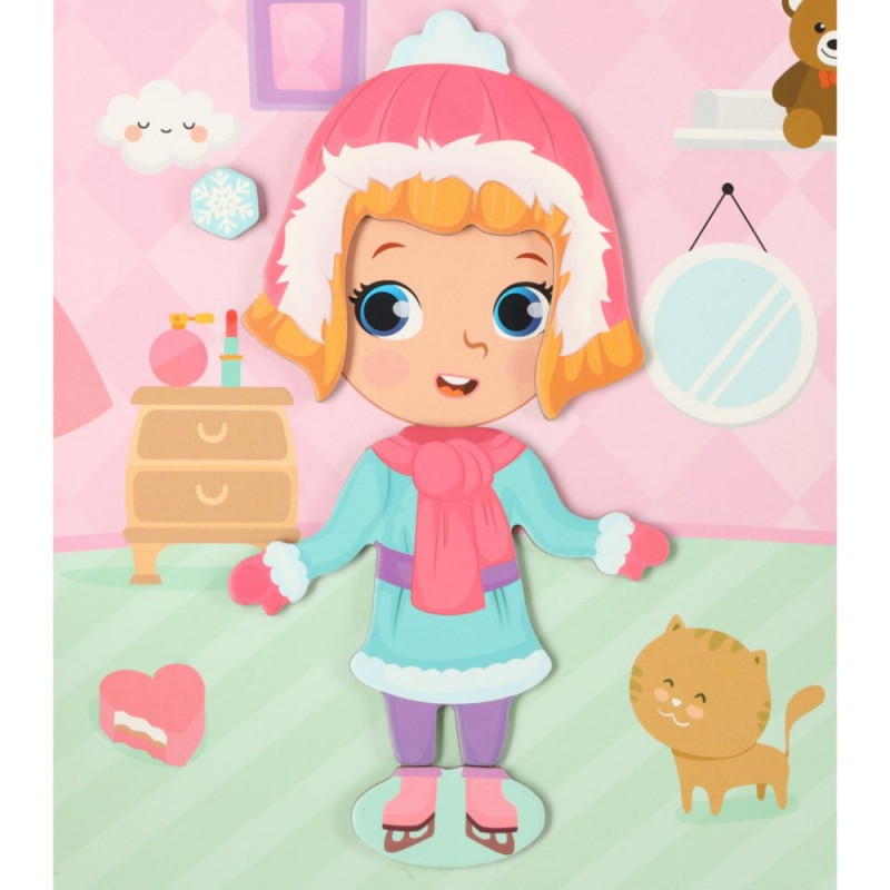 Lase oma lapsel saada stilistiks! Magnetilised mõistatused esitlevad erinevaid riideid, soenguid ja kingi! Mängu eesmärk on riietada magnettahvlil kujutatud väikest tüdrukut!