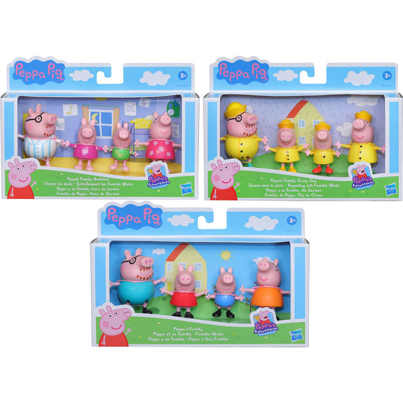 Iga komplekt sisaldab ema, isa, Peppa ja George kujukesi, mille suurus on 7,5 cm.