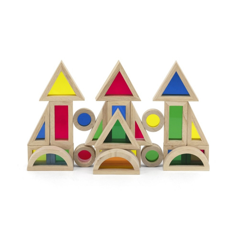 * Building blocks of 4 different colors and 6 different shapes to build various buildings.