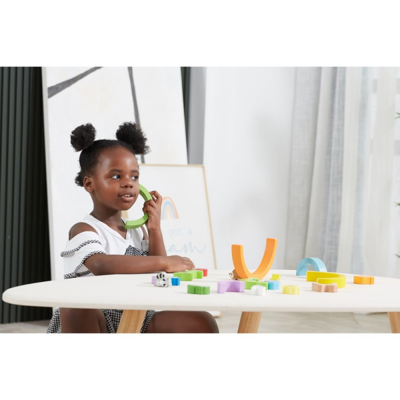 *Colorful, arched building blocks offer different possibilities than conventional building blocks or planks.Every child love to stack or nest rainbow puzzles or use them as an open-ended toy.