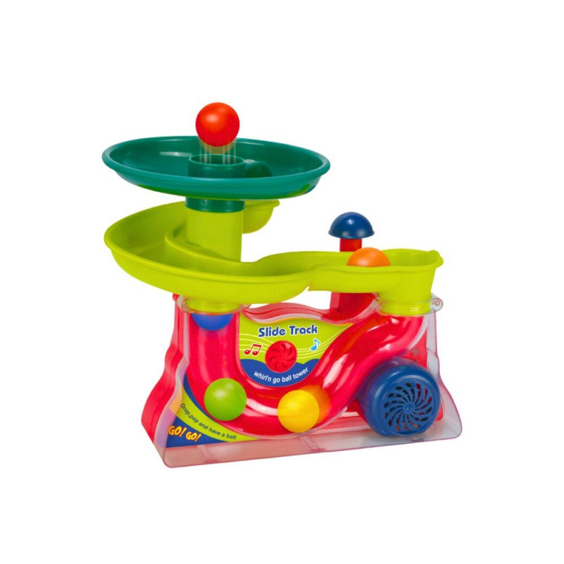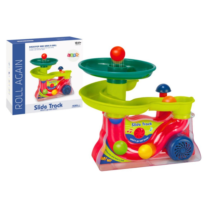 Samaaegselt kuulide liikumisega hakkab mängima lõbus, rütmikas meloodia, mis on loodud just kõige pisematele. Mänguasi on väga värvikas – selle erksad toonid ja atraktiivsed kujundid ergutavad lapse kujutlusvõimet ja huvi.