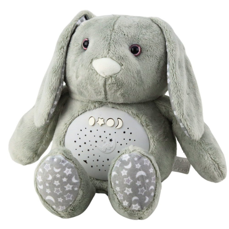 Plüüsjänes projektoriga on armas ja praktiline mänguasi, mis on loodud kõige väiksematele lastele ? juba alates esimestest elupäevadest. See on valmistatud pehmest, mõnusast hallist plüüsist, millel on dekoratiivsed kõrvad ja käpad tähekeste ja kuude mustriga, pakkudes nii esteetilist kui ka funktsionaalset naudingut.
