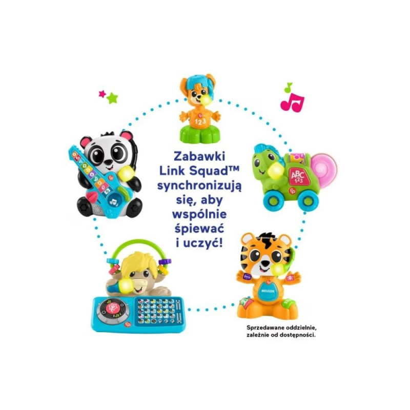 Pisikesed saavad selle muusikalise mänguasjaga Link Squad Jak: Tähed ja sõnad Fisher-Price’ilt ise oma mängu juhtida. Kui väike muusikasõber vajutab DJ-puldi 26 tähega nuppu või keerutab pöörlevat plaati, süttib Jaki mikrofon rõõmsate laulude, helide ja juttude taktis, tutvustades tähti, esimesi sõnu ja palju muud. Lapsed saavad salvestada lõbusa sõnumi, mille DJ Jak remiksib, luues ainulaadse laulu! Kõrinaga pulk aitab arendada käelist osavust. Kui Jak kohtub teiste Link Squad’i liikmetega, süttivad nad koos, et ühiselt laulda ja õppida! Mänguasi on poolakeelne. (Lisamänguasjad Link Squad sarjast on müügil eraldi, sõltuvalt saadavusest. *Fisher-Price Link Squad mänguasjad ei ühildu Fisher-Price Linkimals mänguasjadega).