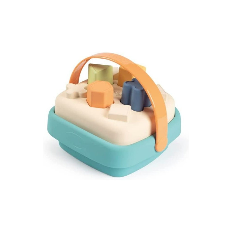 Sorteerija, millel on 4 erinevat kuju ja värvi, mida saab asetada või paigutada 8 erinevasse avasse. Arendab motoorseid oskusi ja käe-silma koordinatsiooni. Mugav käepide kandmiseks. Toode on valmistatud bioplastikust, karp on 100% taaskasutatud papist.