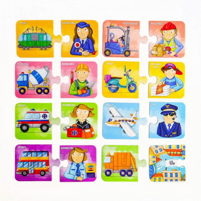 Pusle „Tuletõrjuja või astronaut?”, kus ühendame paaridesse erinevate elukutsete esindajad ja nende tööks vajalikke sõidukeid, ei ole vaid vahend laste peenmotoorika arendamiseks. See annab ka võimaluse rääkida tulevikust, tööga seotud unistustest ja huvidest. Komplektiga on kaasas ülesanded, mis aitavad harjutada mitmeid oskusi. Lisaks laiendavad esitatud põnevad faktid teadmisi nii lapsel kui ka vanemal.