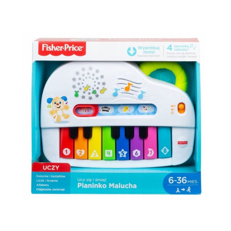 Tänu neljale mänguviisile saab sinu väike muusik rõõmuga komponeerida ja õppida! Kui laps vajutab Fisher-Price’i helendava Malbe Klaveri klahve, kuuleb ta tõelisi nootide helisid, pardi või lehma hääli või lõbusaid laule ja ütlusi värvide, numbrite ning kujundite kohta! Käepide muudab klaveri hõlpsasti kaasaskantavaks, et muusikaline mäng võiks toimuda igal pool.