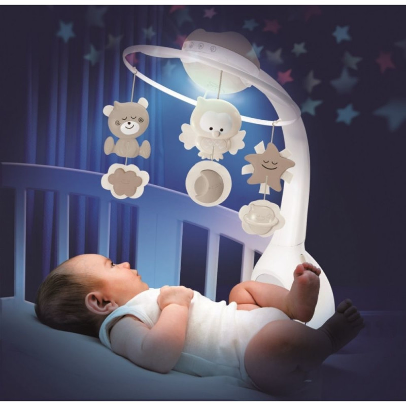Projektor kuvab tähekesi ja mängib rahustavaid meloodiaid, mis aitavad lapsel lõõgastuda ja uinuda. Karussellil keerlevad muusika saatel armsad loomakesed. Seadmel on 2 taasesitusrežiimi: päevarežiim ja öörežiim.
