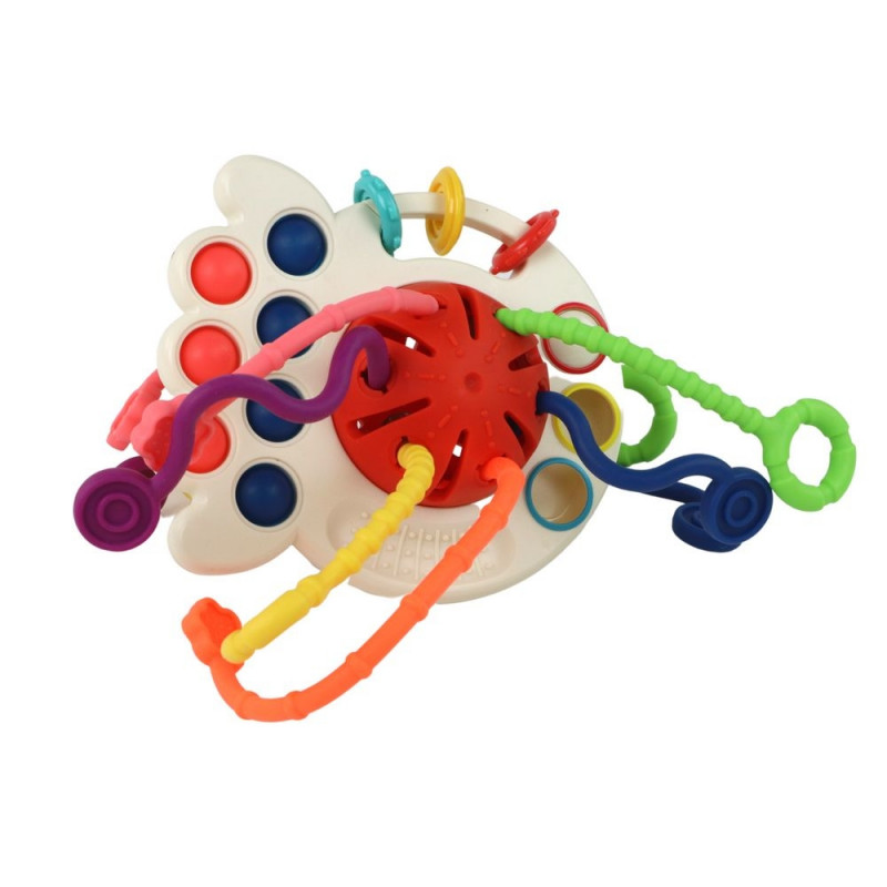 • Arendav mänguasi: Sensoorne hariduslik mänguasi, mis kaasab last värviliste nööride tõmbamise, mullide pigistamise ja nende liigutamise kaudu. Ergutab motoorseid oskusi ja puutetaju arengut.