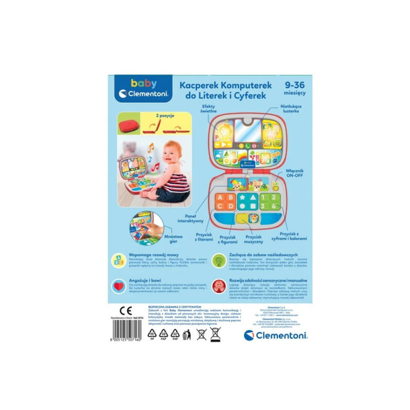 Interaktiivne sülearvuti Komputerek Kacperek tähtede ja numbrite õppimiseks, poola keel, Clementoni 50716
