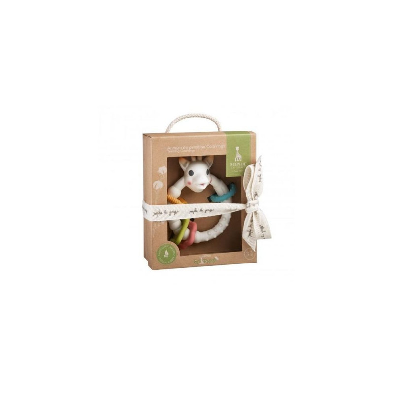 A colorful teething ring with numerous textures!<br>Healthy and natural, this teething ring is made of 100% natural rubber, pulled from the Hevea tree latex, and food-graide paints.<br><br>With numerous soft parts to chew and with various textures (Sophie’s spots, ridges, ears and horns), it offers different massages and relieves efficiently Baby’s sore gums.<br><br>Its 4 geometrical and colorful shapes catch Baby’s eyes, while playing and sliding them around the main ring.<br><br>Light and ergonomic, it is easy to catch and manipulate for Baby’s tiny hands.Sophie la girafe 220120. Recommended gender: Boy/Girl, Recommended age (min): 3 month(s), Material: Rubber, Product colour: Multicolour. Weight: 68 g