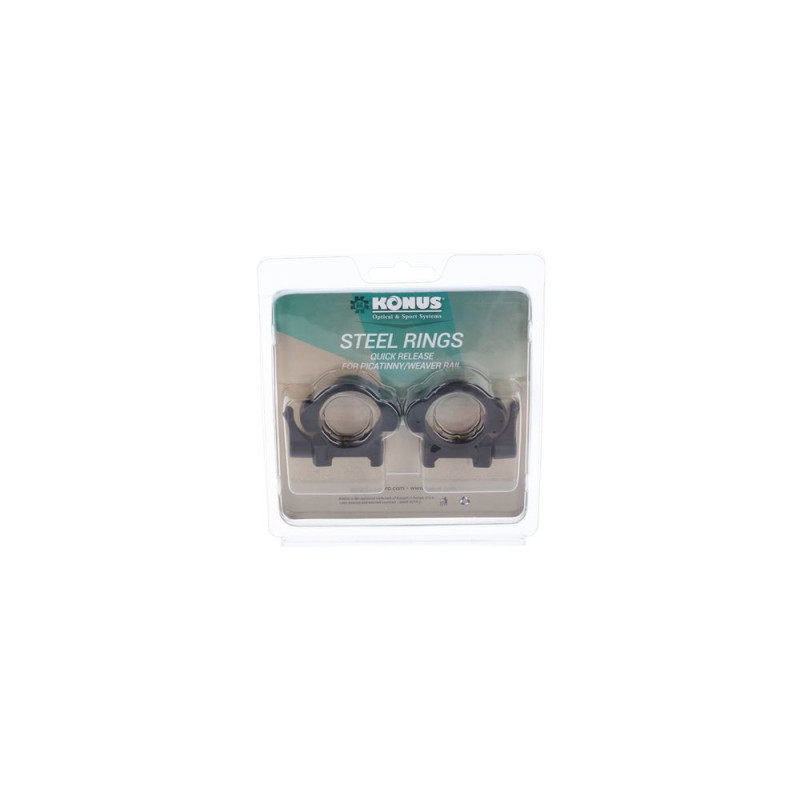 Konus Quick Release 30mm Medium Rings fit scopes to rifles using Weaver/Picatinny rails, supporting 30mm tubes and 44mm objectives. Made of high-quality steel, they allow fast scope swapping. Includes 2 rings, hex key, and packaging.Osta kohe, viimased eksemplarid laos!