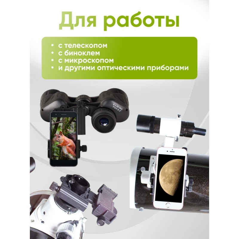 Levenhuk A10 Smartphone Adapter is a very useful accessory for everyone interested in astrophotography, or shooting wildlife or microcosm. The adapter allows you to install any smartphone model on your telescope, microscope, binoculars, or spotting scope. Now you can take pictures of Saturn's rings, record quality video of running wild boars, capture moving ciliates, and photograph many other interesting things that you can immediately e-mail to your friends or post on Instagram!