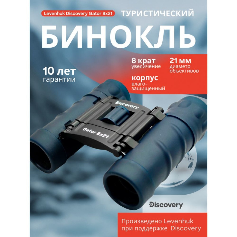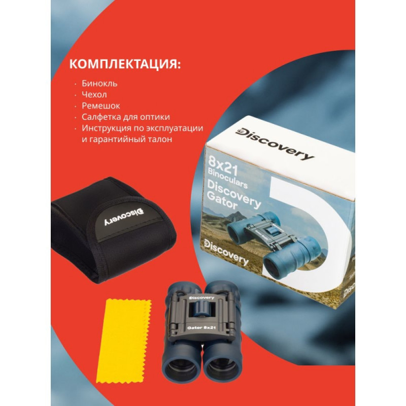 The Discovery Gator 8x21 binoculars are made for those who are searching for a small but powerful device for outdoor observation activities. This model ensures the 8x magnification and a wide field of view. These binoculars are ideal whether you want to see distant objects (e.g. animals and buildings), view sporting events at a stadium, or enjoy birdwatching in the park.