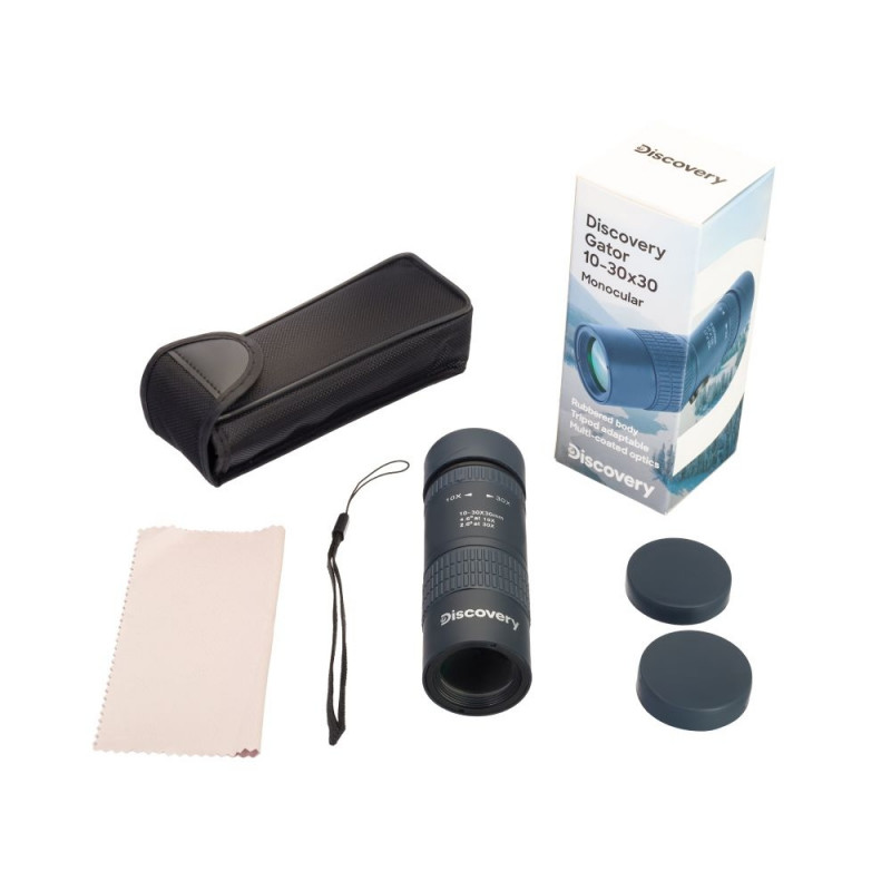 The Discovery Gator 10-30x30 is a compact optical monocular that enables viewing with a magnification of 10x and 30x. The device produces clear and contrast images on each magnification level, making spotting even the minor details of objects effortless. The monocular can be easily transported and used for viewing nature or architecture.