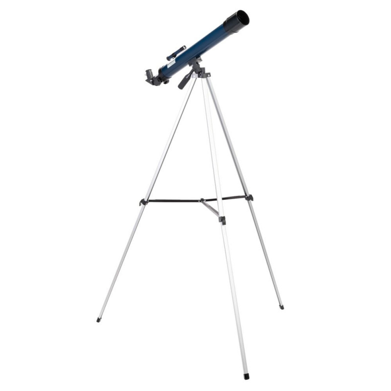 The telescope included in the kit is an AZ refractor. It enables you to observe the Moon, bright night sky objects, and terrestrial landscapes. As the telescope is mounted to a full-size tripod, it can be easily adjusted to an observer’s height. The operation is not difficult. The telescope can be rotated up, down, left, and right like a spotting scope. For the convenience of operation, the mount is fitted with a handy focus adjustment knob. The telescope is also supplemented with an optical finderscope, eyepieces, and a diagonal mirror.