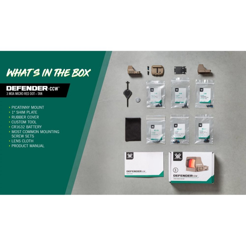 - 1x Vortex Micro Red Dot Defender-CCW 3 MOA Tan