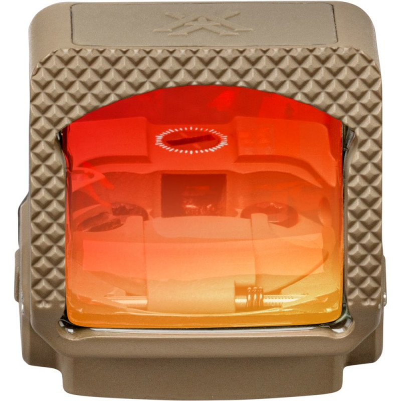 Vortex Micro Red Dot Defender-ST 3 MOA Tan põhiomadused- Asfääriline kõvapinnaga lääts: kristallselge, terav ja moonutustevaba vaade — isegi ereda päikesevalguse käes