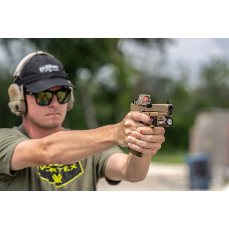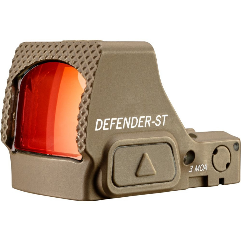 Compact Vortex Defender-ST 3 MOA (tan): fast, reliable micro red dot for any shooter — pistols to shotguns. ShockShield, motion-activated, night-vision compatible, waterproof, battery up to 25,000 hrs.