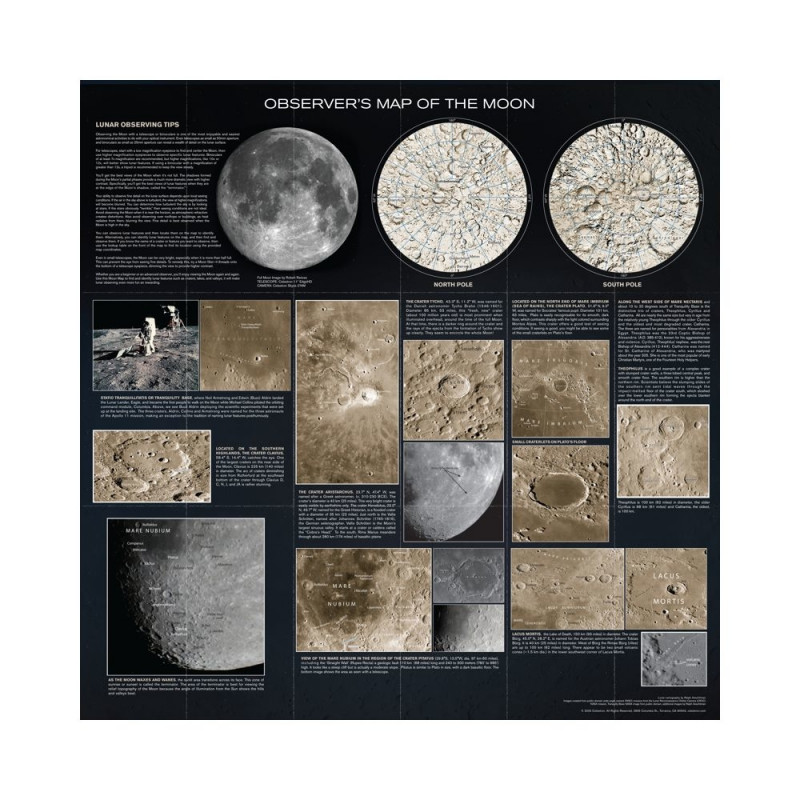 Celestron has joined forces with master lunar cartographer Ralph Aeschliman on a two-sided Moon Map. This quality map provides you a great way to familiarize yourself with the Moon, our neighboring world. Whether you are looking for Lacus, Maria, Montes, or Valles, the Moon map will help you navigate the lunar landscape with confidence. You can observe features with your telescope and locate them on the map or vice versa. This map also features a directory of all the key lunar regions with coordinates to find them.Osta kohe, viimased eksemplarid laos!