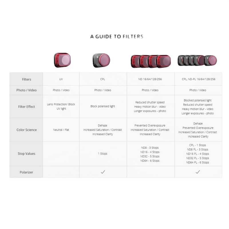 PGYTECH DJI Mini 3 UV-filter on kõvast kattekihist, mis kaitseb objektiivi ja andureid, takistades UV-valguse sisenemist kaamerasse.