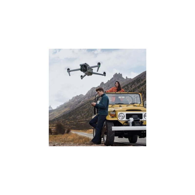 <b>Complementary Camera Performance</b><br>The 1/1.3-inch-CMOS wide-angle camera and 3x medium tele camera deliver consistent image quality <sup>[1]</sup> and more dynamic imaging possibilities.<br><br><b>46-Min Max Flight Time</b><br>Air 3's 46-minute flight time <sup>[3]</sup> is a 48% increase. <sup>[2]</sup> The battery charging hub also allows power transfer among batteries.<sup>[4]</sup><br><br><b>Dual-Camera 48MP Photos</b><br>Both cameras can deliver 48MP photos filled with true-to-life details that look great and allow seamless cropping in post for those who need it.<br><br><b>4K/60fps HDR Videos</b><br>The two 1/1.3-inch CMOS sensors support dual native ISO for 4K/60fps HDR videos without cropping, providing rich, natural-looking results.<br><br><b>Omnidirectional Obstacle Sensing</b><br>Air 3 can detect obstacles in all directions <sup>[5]</sup> and can use APAS 5.0 to perform smoother avoidance <sup>[6]</sup> for a safer overall flight experience.<br><br><b>O4 HD Video Transmission</b><br>The next-gen O4 video transmission provides a max range of 20 km <sup>[7]</sup> with increased stability, and a 1080p/60fps max-quality live feed.<br><br>The two cameras complement each other, for more diverse aerial imaging possibilities. With the 24mm wide-angle camera, sweeping landscapes can be more fully captured. The 70mm 3x medium tele camera can create a powerful sense of spatial compression, with more distinct layers and a more unified background, subjects can be captured as a bold focal point.<br><br>1. The wide-angle camera and 3x medium tele camera have different apertures.<br>2. Compared with DJI Air 2S.<br>3. Measured with DJI Air 3 flying at a constant speed of 28.8 kph in a windless environment at sea level, with APAS off, AirSense off, camera parameters set to 1080p/24fps, video mode off, and from 100% battery level until 0%. Data is for reference only. Always pay attention to reminders in the app during flight.<br>4. The power accumulation function can transfer the remaining power from multiple batteries to the battery with the highest remaining power. DO NOT connect the charger, connect external devices, or insert/remove any batteries when using this function.<br>5. DO NOT use the aircraft in severe weather conditions, including heavy wind exceeding 12 m/s, snow, rain, fog, hail, or lightning. DO NOT fly the aircraft 6,000 m (19,685 ft.) or higher above sea level. DO NOT fly the aircraft in environments where the temperature is below -10° C (14° F) or above 40° C (104° F). DO NOT take off from moving objects such as cars or boats. DO NOT fly close to reflective surfaces such as water or snow. Otherwise, the vision system may not work correctly. When the GNSS signal is weak, fly the aircraft in environments with good lighting and visibility. Low ambient light may cause the vision system to function abnormally. DO NOT fly near areas with magnetic or radio interference. Familiar magnetic or radio interference sources include Wi-Fi hotspots, routers, Bluetooth devices, high-voltage lines, large-scale power transmission stations, radar stations, mobile base stations, and broadcasting towers. Avoid sand entering the aircraft when taking off in desert or beach areas. Fly the aircraft in open areas away from crowds. Buildings, mountains, and trees may block the GNSS signal and affect the onboard compass.<br>6. The obstacle avoidance action should be set to Bypass in the app.<br>7. Measured in an outdoor, open environment, without interference, and with FCC compliance. The above data shows the farthest communication range for one-way, non-return flights. Always pay attention to reminders in the app during your flight.DJI Air 3 Fly More Combo. Number of rotors: 4 rotors. Megapixel (approx.): 48 MP, Maximum video resolution: 3840 x 2160 pixels. Maximum speed: 21 m/s, Maximum operating distance: 32000 m. Moving control functions: Backward, Downward, Forward, Turn left, Turn right, Upward. Battery technology: Lithium-Ion (Li-Ion), Battery capacity: 4241 mAh. Internal memory: 8 GB, Compatible memory cards: MicroSDHC, MicroSDXC. Wi-Fi, Wi-Fi standards: 802.11a, 802.11b, 802.11g, Wi-Fi 4 (802.11n), Wi-Fi 5 (802.11ac), Bluetooth, Bluetooth version: 5.2. Product colour: Black, Grey