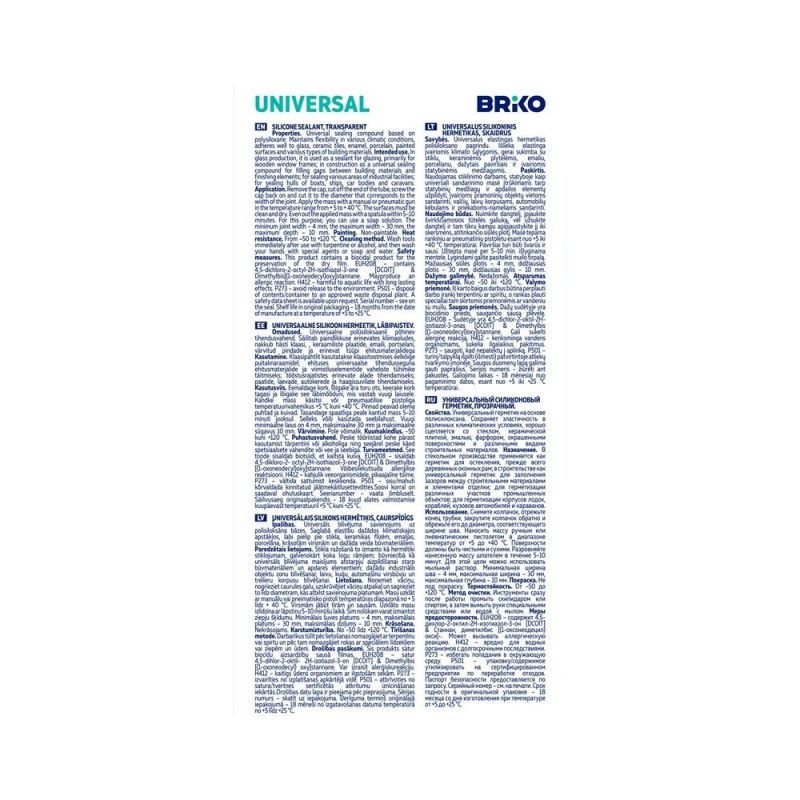 CLEAR UNIVERSAL SEALANT BRIKO 1001U