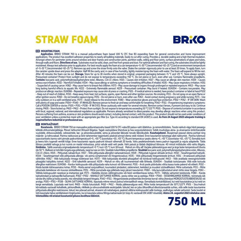 Otsite usaldusväärset ja tõhusat montaaživahtu igapäevaseks kasutamiseks? BRK369909 BRIKO MONTAGE FOAM 750ML on suurepärane valik nii professionaalidele kui ka kodukasutajatele. See kvaliteetne polüuretaanvahust montaaživaht sobib suurepäraselt erinevate ehitus- ja remondimaterjalide, näiteks uste ja akende paigaldamiseks, pragude ja avade täitmiseks ning soojustamiseks.