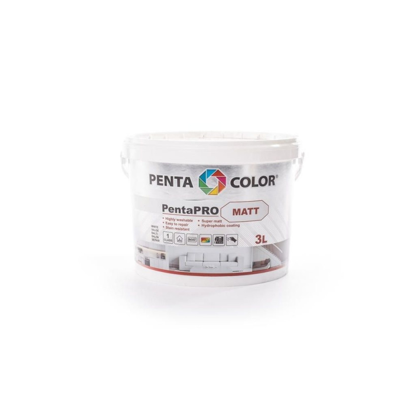 PAINT PENTACOLOR PENTAPRO MATT CLR 3L on kvaliteetne matt värv siseviimistlustöödeks. Sobib suurepäraselt erinevatele pindadele, nagu seinad ja laed. Värv on vastupidav ja kauapüsiv, tagades kauni tulemuse pikkadeks aastateks.