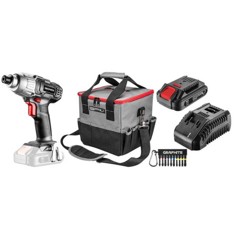 Energy + komplekt: 18V kruvikeeraja, 2.0Ah aku, laadija, tööriistakott, bitsid