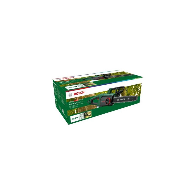 <br />Bosch 0 600 8B8 303. Blade length: 35 cm, Chain speed: 12 m/s, Drive link thickness: 110 cm. Power source: AC, Power: 1800 W. Width: 268 mm, Height: 213 mm, Length: 570 mm. Package type: Box