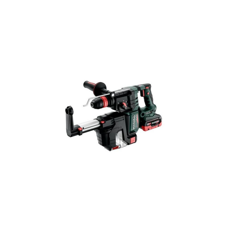<b>KH 18 LTX BL 28 Q Set ISA (601715930) Cordless combination hammer</b><br><br>- Extremely light and compact cordless hammer with integrated extraction interface<br>- Maximum drill performance, efficiency and service life thanks to brushless technology and high-performance hammer action<br>- Dust-free drilling with compact dust extraction ISA 28<br>- Combination hammer with 3 functions: hammer drilling, drilling and chiselling<br>- Metabo VibraTech (MVT): integrated damping system to reduce vibrations in order to protect the user's health<br>- Metabo Quick: quick change between SDS Plus hammer chuck and keyless chuck for many different applications<br>- Vario-Tacho-Constamatic (VTC)-Full Wave Electronics for work with materials requiring customised speeds, which remain constant under load<br>- Optional reduction of speed and impact energy for starting a drill hole or working in softer materials<br>- Electronic soft start for precise spot-drilling<br>- Double safety when the drill bit jams: No kick-back thanks to the mechanic decoupling plus ultra-fast sensor-controlled shutdown<br>- LED work light for optimum view of the drilling site<br>- Many brands, one battery pack system: This product can be combined with all 18V battery packs and chargers of the CAS brandsMetabo KH 18 LTX BL 28 Q Set ISA. Chuck type: SDS Plus, Product colour: Black, Green, Red, Silver, Motor type: Brushless motor. Drilling diameter in concrete (max): 2.8 cm, Rated speed (max): 1000 RPM, Impact energy (max): 3 J. Power source: Battery, Battery voltage: 18 V, Battery technology: LiHD. Weight: 4.5 kg, Width: 87 mm, Depth: 378 mm. Number of batteries included: 2 pc(s)