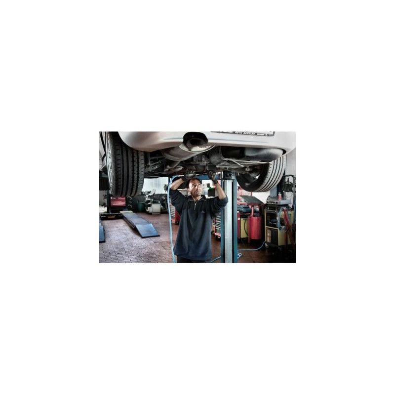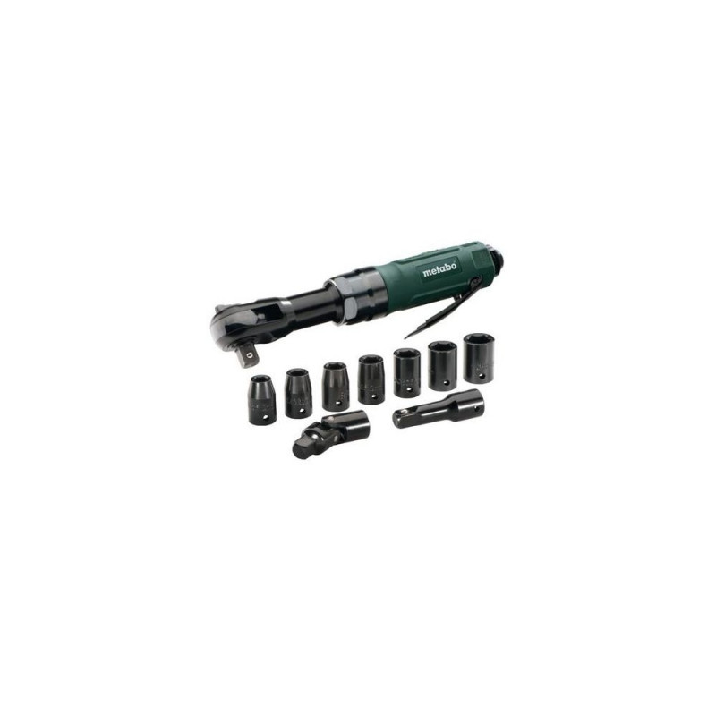 - Easy adjustment of direction of rotation at ratchet head<br>- Compact design<br>- For all work with screws: e.g. repairs on cars, steel construction etc.<br>- Ergonomic fwd/rev switch<br>- Ergonomic, partially rubber-coated housing: cold-insulating, non-slip and low vibration for comfortable work<br>- Integrated speed control<br>- Rotatable exhaust guide at the side of the housing.Metabo DRS 68 Set 1/2". Product type: Air ratchet wrench, Product colour: Black, Green. Torque (max): 68 N⋅m, Maximum airflow: 220 l/min, Maximum operating pressure: 6.2 bar. Power source: Compressed air. Weight: 1.2 kg. Wrenches/sockets sizes: 9,10,13,14,17,19 mm, Handle(s) features: Ergonomic, Insulated, Non-slip grip