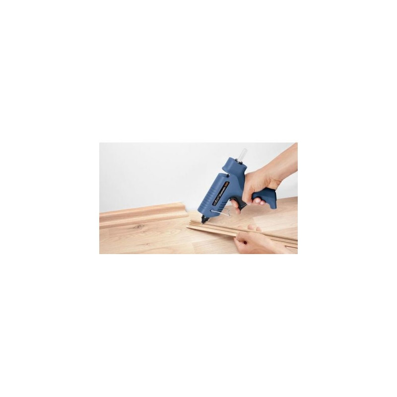 <b>Strong. Neat. Versatile. No compromising.</b><br>Mounting wall plugs, gluing picture frames or assembling flower arrangements: Not a problem for the high-performance Gluematic 5000 – where and whenever you choose. Because after heating up for three to five minutes, the tool is ideal for 20 minutes of cordless gluing work thanks to its modern heat storage system. For prolonged gluing work over large areas, this all-rounder with a very high glue delivery rate (22 g/min) can, of course, also be connected directly to the power supply.STEINEL Gluematic 5000. Product type: Hot glue gun, Product colour: Blue. Glue output: 22 g/min, Warm-up time (min): 180 s, Glue stick diameter: 1.1 cm. Power source: AC, Input power (max): 500 W, AC input voltage: 220 - 240 V. Width: 32 mm, Depth: 185 mm, Height: 180 mm