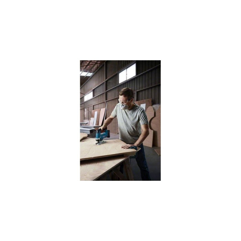 GST 18V-125 B Professional: Further information<br>Product Highlights<br>The robust design and the powerful brushless motor of the GST 18V-125 B Professional (with bow handle) ensure increased tool longevity and excellent tool runtime. The cordless jigsaw is a reliable problem solver for all applications at an optimal price-performance ratio in its segment. The GST 18V-125 B Professional keeps it simple with a focus on core important functions such as SDS blade holder, LED, 4-stage pendulum, dust blower and Speed Selection.<br>Equipment & Application<br>This cordless jigsaw is ideal for curved and cross cuts in solid wood, chipboard, and wood composites as well as for thicker or harder materials. It can be used with guide rails via adapter. The tool is compatible with external dust extraction and with all Bosch Professional 18V batteries and chargers (Professional 18V System).<br>Additional Information<br>The baseplate of the GST 18V-125 B Professional can be adjusted up to 45° to make bevel cuts. The tool comes with a removable plastic overshoe to protect sensitive workpieces.Bosch GST 18V-125 B Professional. Sound power level: 94.5 dB, Sound pressure level: 83.5 dB. Package width: 360 mm, Package depth: 440 mm, Package height: 150 mm