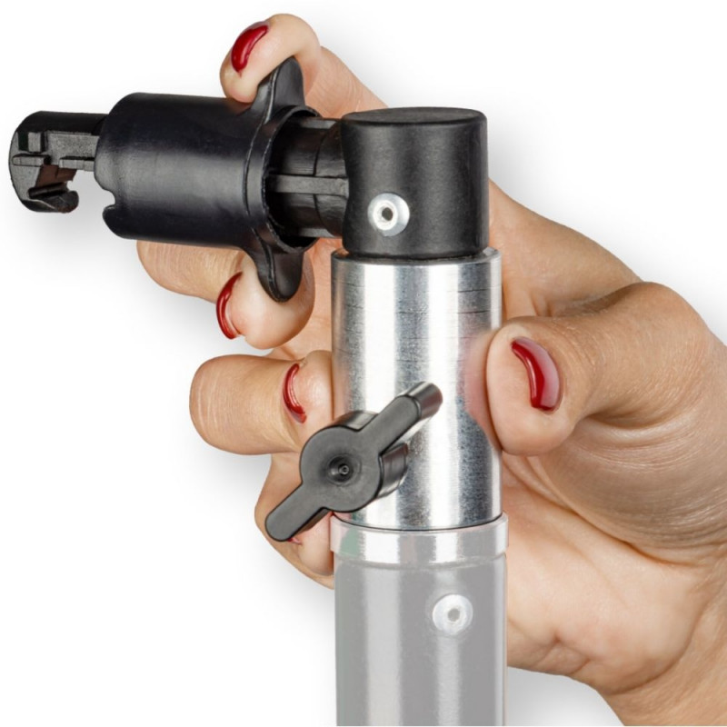 The stepless adjustment allows you to fix backgrounds or reflectors with a maximum thickness of 1.5 cm. The hook-shaped clamp securely grips matching profiles and holds them reliably. Rods, ropes or cables can also be clamped, making it easier to attach decorative materials such as fairy lights or light nets.