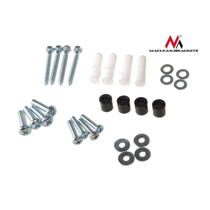 W zestawie komplet śrub do montażu uchwytu do ściany oraz telewizora do uchwytu.