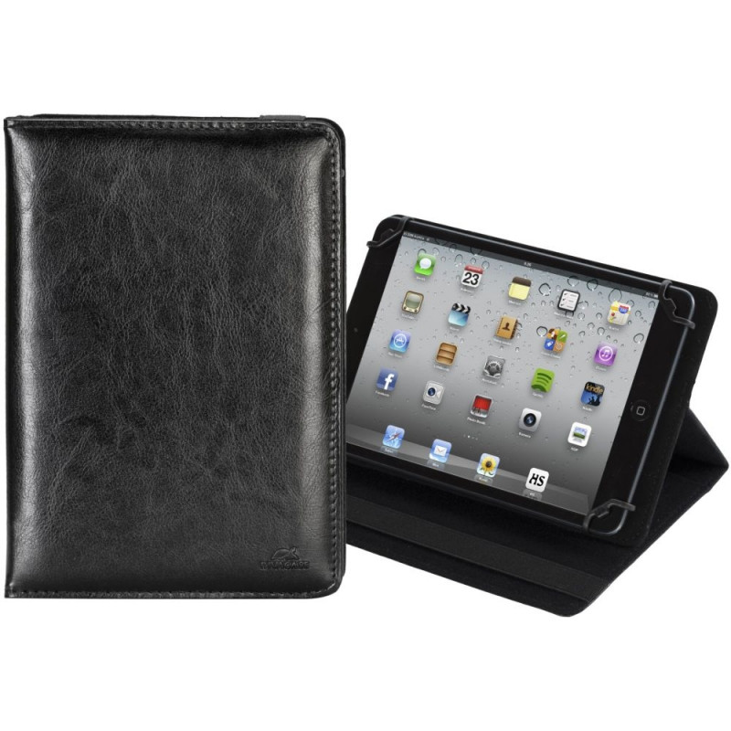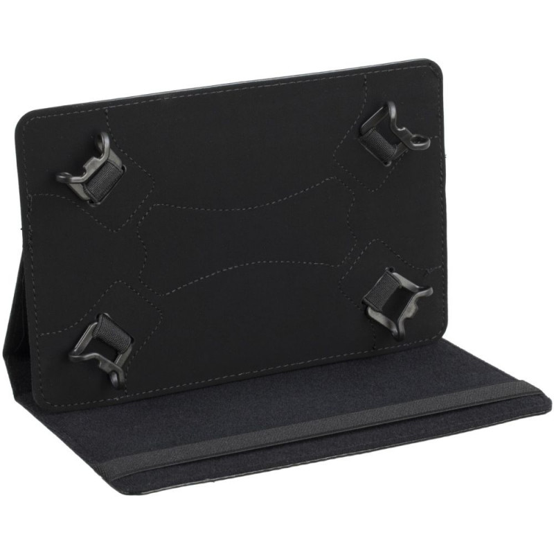 - Two hidden Velcro fasteners allow the tablet to be fixed in different viewing angles. An elastic strap securely closes the case while the device is not in use.