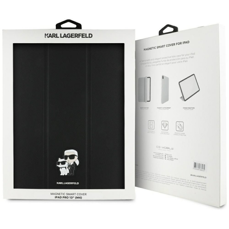 Karl Lagerfeld Saffiano Magnetic Karl & Choupette iPad Pro 13" 2024 Book Cover Case - Black