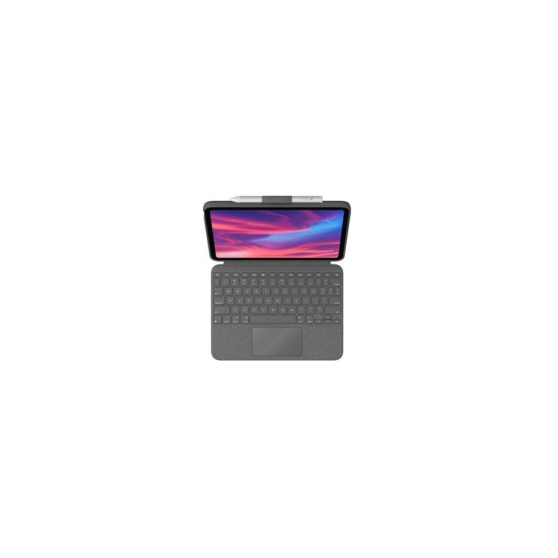 <br />Logitech Combo Touch. Keyboard layout: QWERTY, Keyboard language: UK English, Pointing device: Touchpad. Brand compatibility: Apple, Compatibility: {loc-value}, Product colour: Grey. Connectivity technology: Docking, Device interface: Smart Connector. Power source: Dock. Mobile operating systems supported: iPadOS