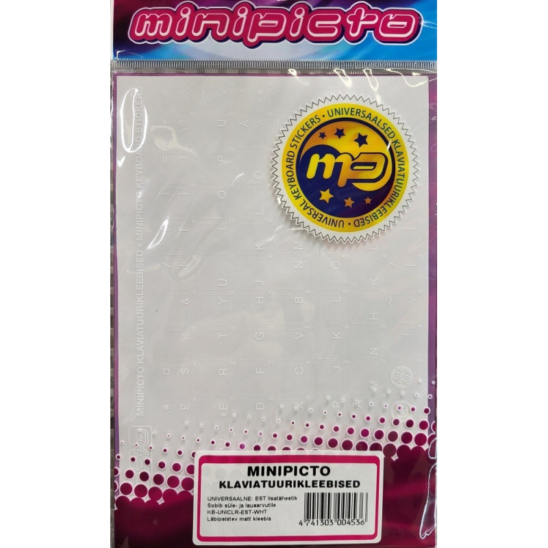 Klaviatuurikleebis lisatähed, universaalne matt lisatähestik, läbipaistev taust, valged sümbolid EST