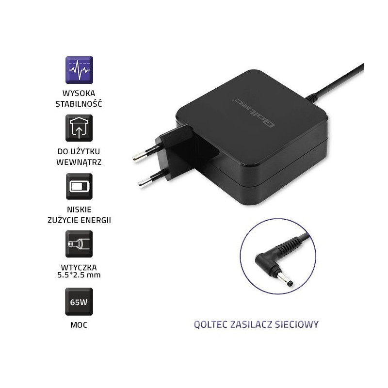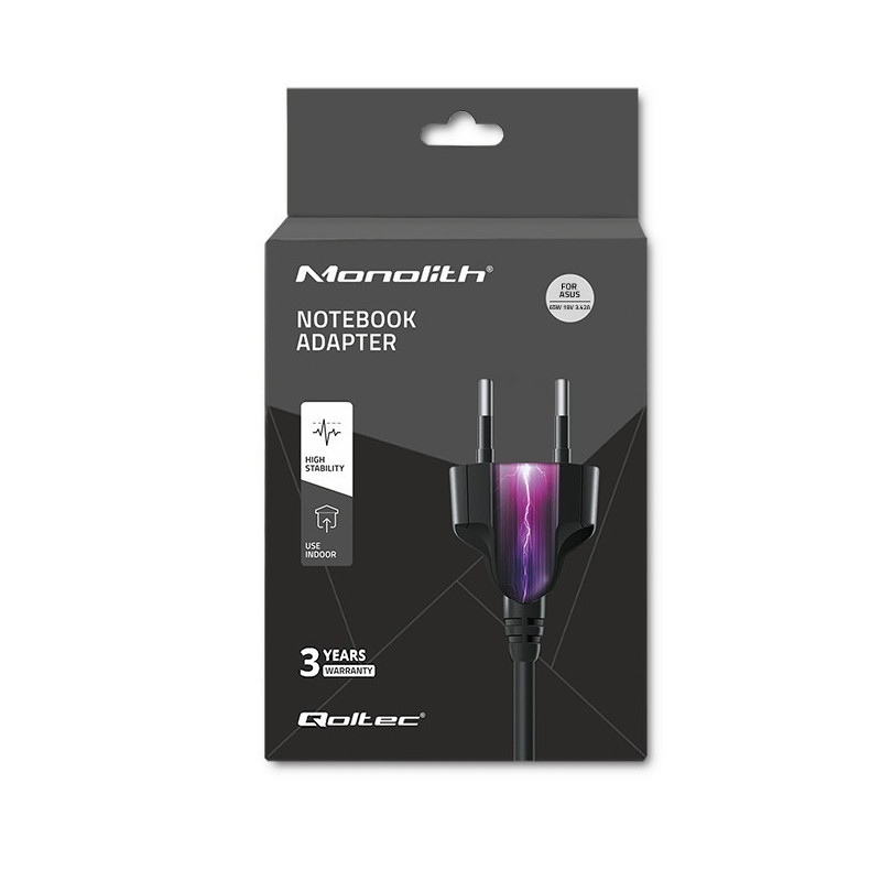 When it comes to power supplies, reliability is crucial. Select a Qoltec power adapter dedicated to Asus laptops. It is made of the highest quality materials, and the technologies used in it allow for low energy consumption and high efficiency. Package contents power supply with velcro to organize the cable, thanks to which you can adjust the length of the cable.