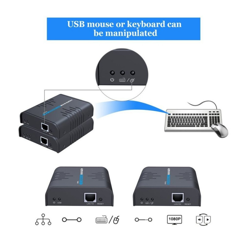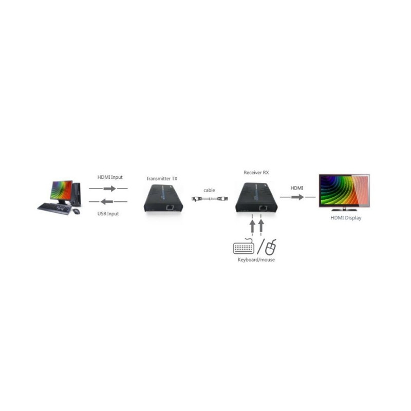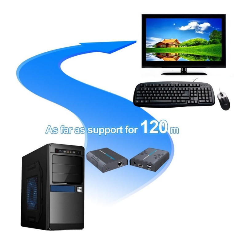 PremiumCord HDMI KVM extender with USB at 120m via Cat5/6, without delay The device allows you to transmit an HDMI FULL HD 1080p signal via a single network cable or via an Ethernet network and connect USB peripherals, a keyboard and a mouse up to a diWarning: Last items in stock!