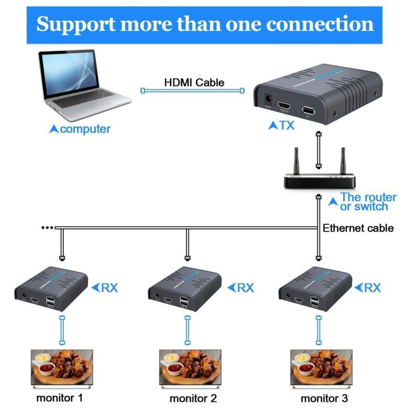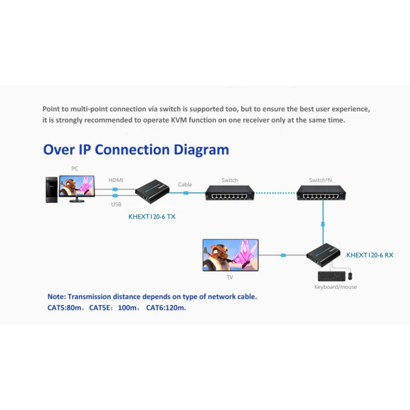 | Maximum range | 120m when using CAT6 AWG23 cable |